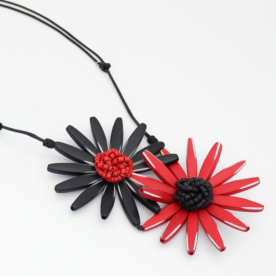 Black and Red Amaya Double Flower Statement Necklace