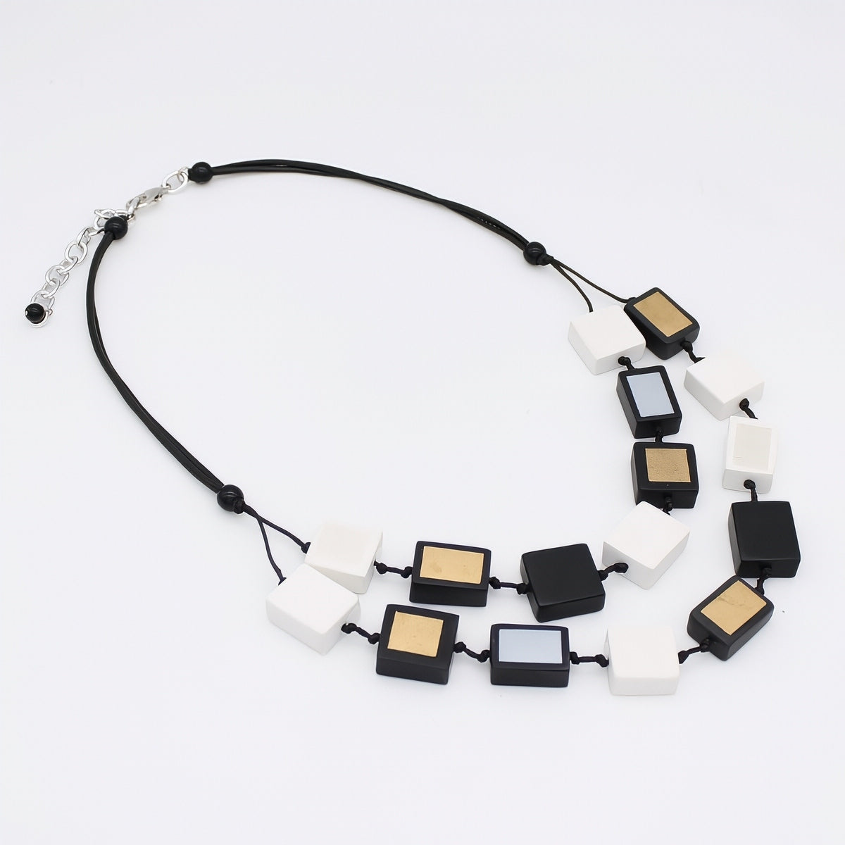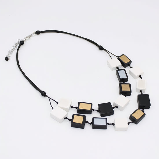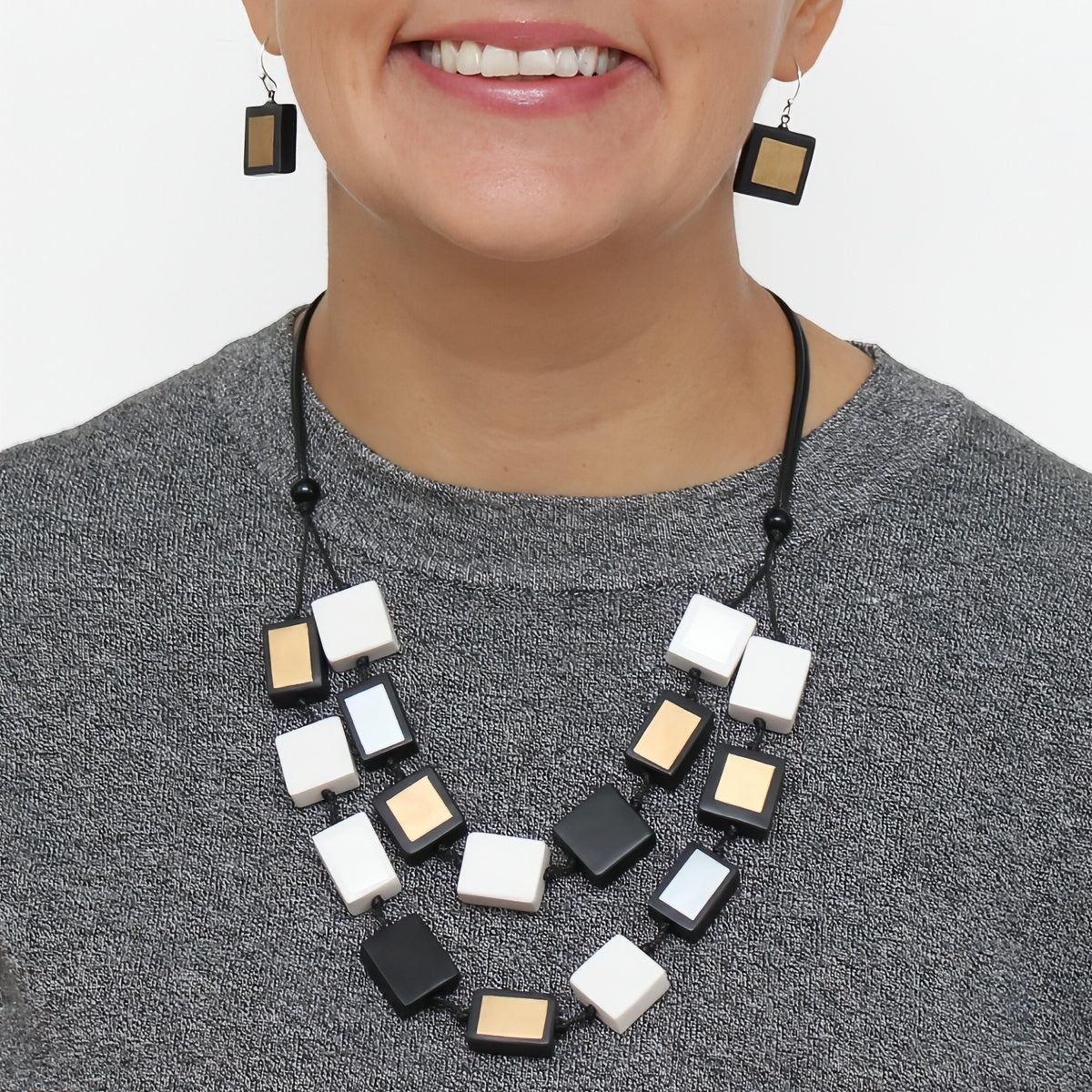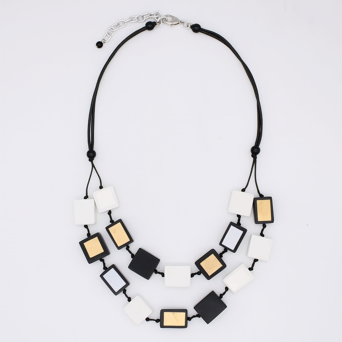 Black Mira Verde Double Necklace – A stunning celebration of timeless elegance and modern sophistication. This handcrafted statement piece features elegant double strands of black square beads beautifully enhanced with refined metallic accents. Hand-strung for exceptional durability and care, this lightweight design offers an adjustable fit for perfect, personalized comfort.