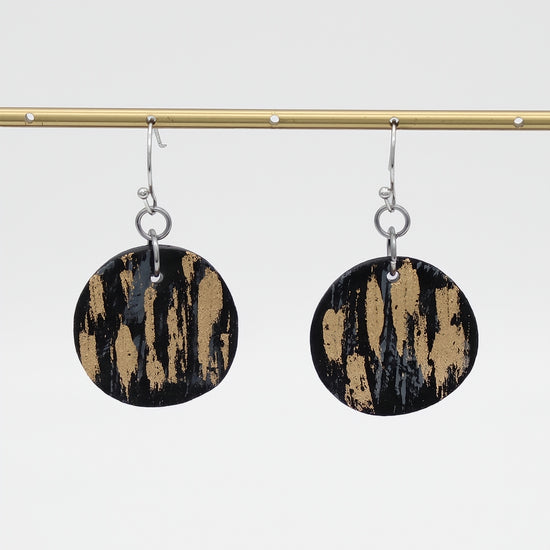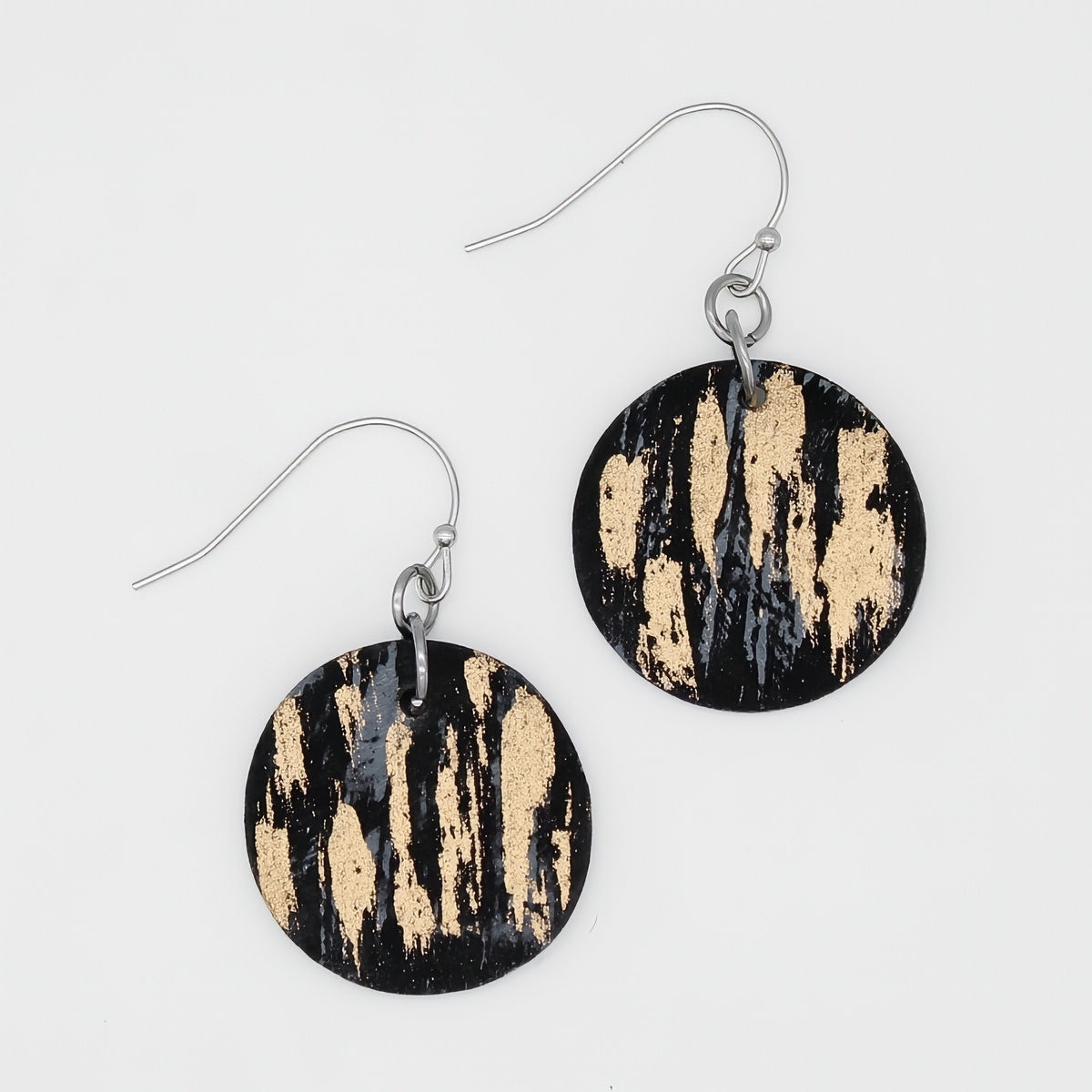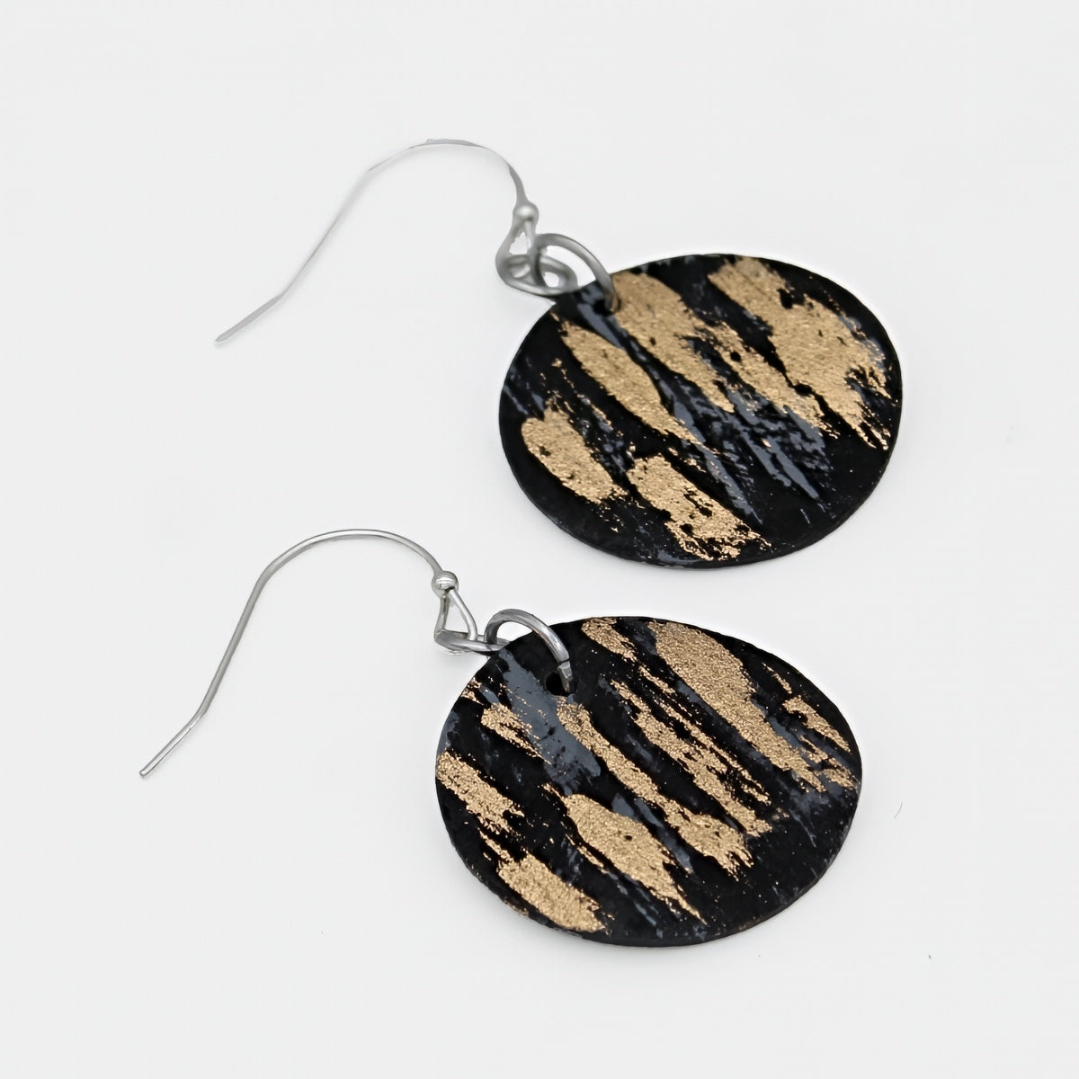 Black Twilight Maren Earrings – Embrace sophisticated elegance with these striking handcrafted earrings featuring a luxurious black brushed metallic finish. The round dangle design showcases unique texture and depth, creating a refined statement piece that effortlessly transitions from day to night with modern, artisan-crafted appeal.