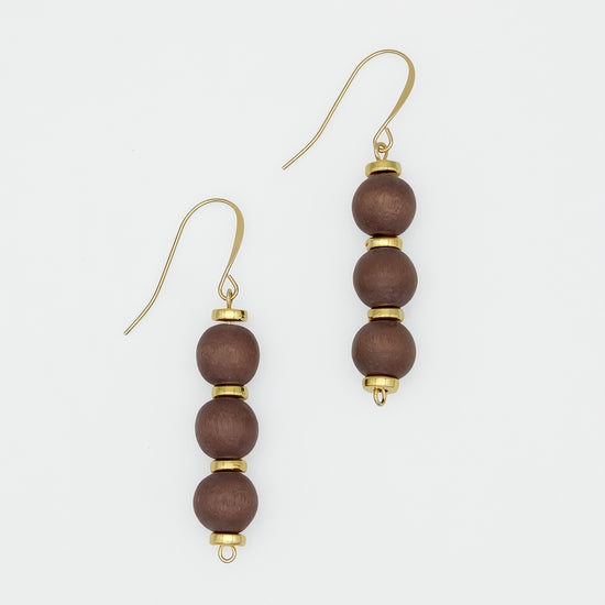 A trio of smooth wooden beads in soft brown tones comes together to create these Brown Cascade Earrings. Versatile and perfect for everyday wear or dressed-up occasions. Hung from a gold plated french hook, these are a neutral statement piece that pairs seamlessly with any outfit.