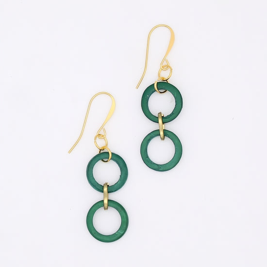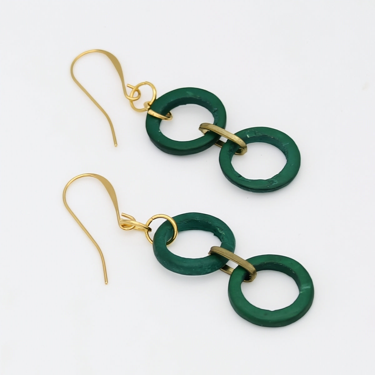 Suspended from gold-plated French hooks, the dual-link design offers a flattering elongated silhouette that draws the eye and complements any face shape. The balanced proportions make these earrings versatile enough for both casual daytime wear and elevated evening looks.