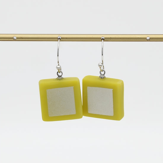Lime Mira Verde Earrings feature a sleek square design in vibrant lime green, enhanced with subtle metallic silver accents for a refined touch. These lightweight statement earrings add an elegant edge to any outfit, perfect for elevating your sophisticated style with modern flair and fresh, energetic color.