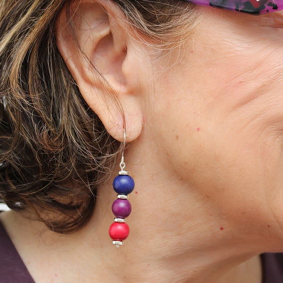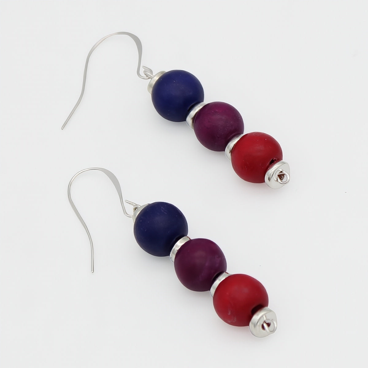 A trio of smooth wooden beads in soft brown tones creates an effortless cascade of natural beauty. These handcrafted earrings bring versatile elegance to any look, transitioning seamlessly from everyday wear to dressed-up occasions with their timeless neutral palette and artisan craftsmanship.