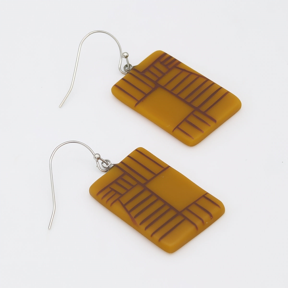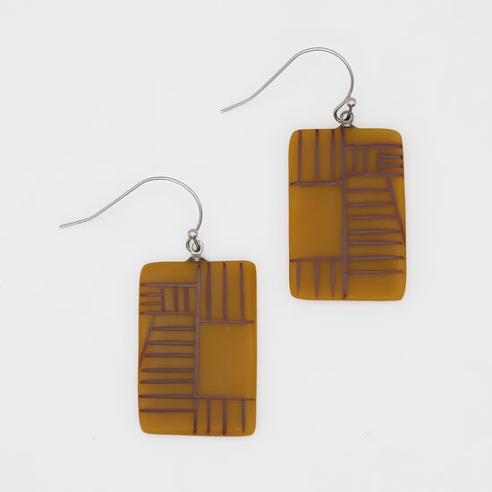 Add a splash of fun to your style with these Mustard Geovibe Drop Earrings. Hand-painted with a crisp beige geometric design on mustard and tan resin, they bring a playful boho vibe that's perfect for everyday wear or special outings. Comfortable to wear and sure to catch eyes, these earrings are your new go-to accessory for effortless charm.