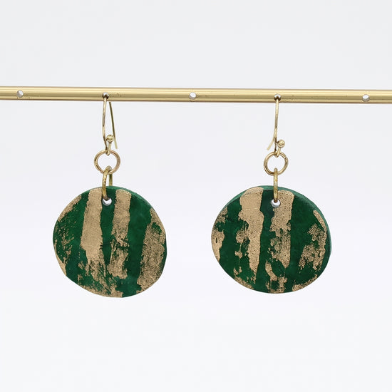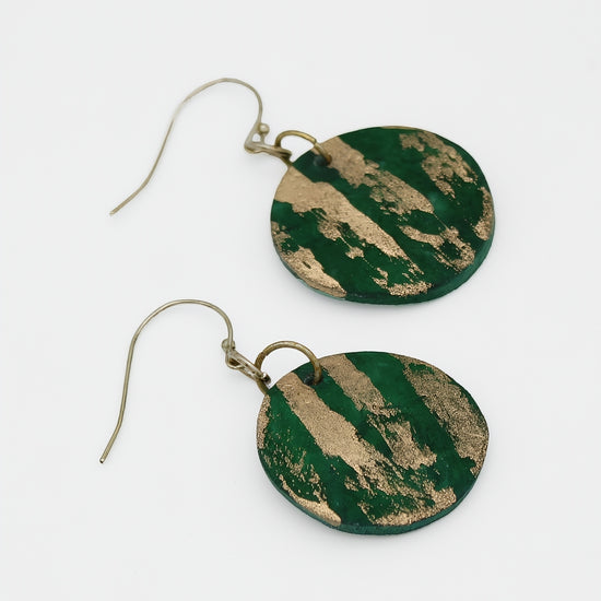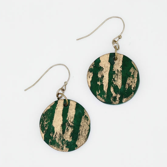 The Green Maren Earrings showcase a sophisticated green brushed metallic finish on lightweight, round dangle designs. Expertly handcrafted, these earrings combine artisan craftsmanship with a striking aesthetic, offering comfortable wear without sacrificing style. Their unique texture and elegant form make them a refined choice for elevating your accessory collection.