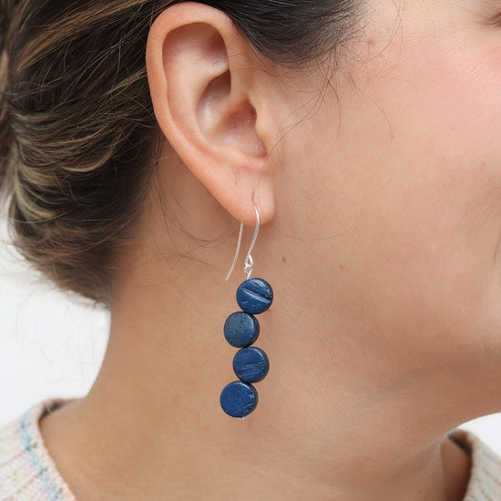 These navy dangle earrings feature four small wooden beads that dangles off a silver wire for a look that will surely stand out! Wear them solo for an understated look, or pair them with a coordinating statement necklace for a more complex, accessorized expression!
