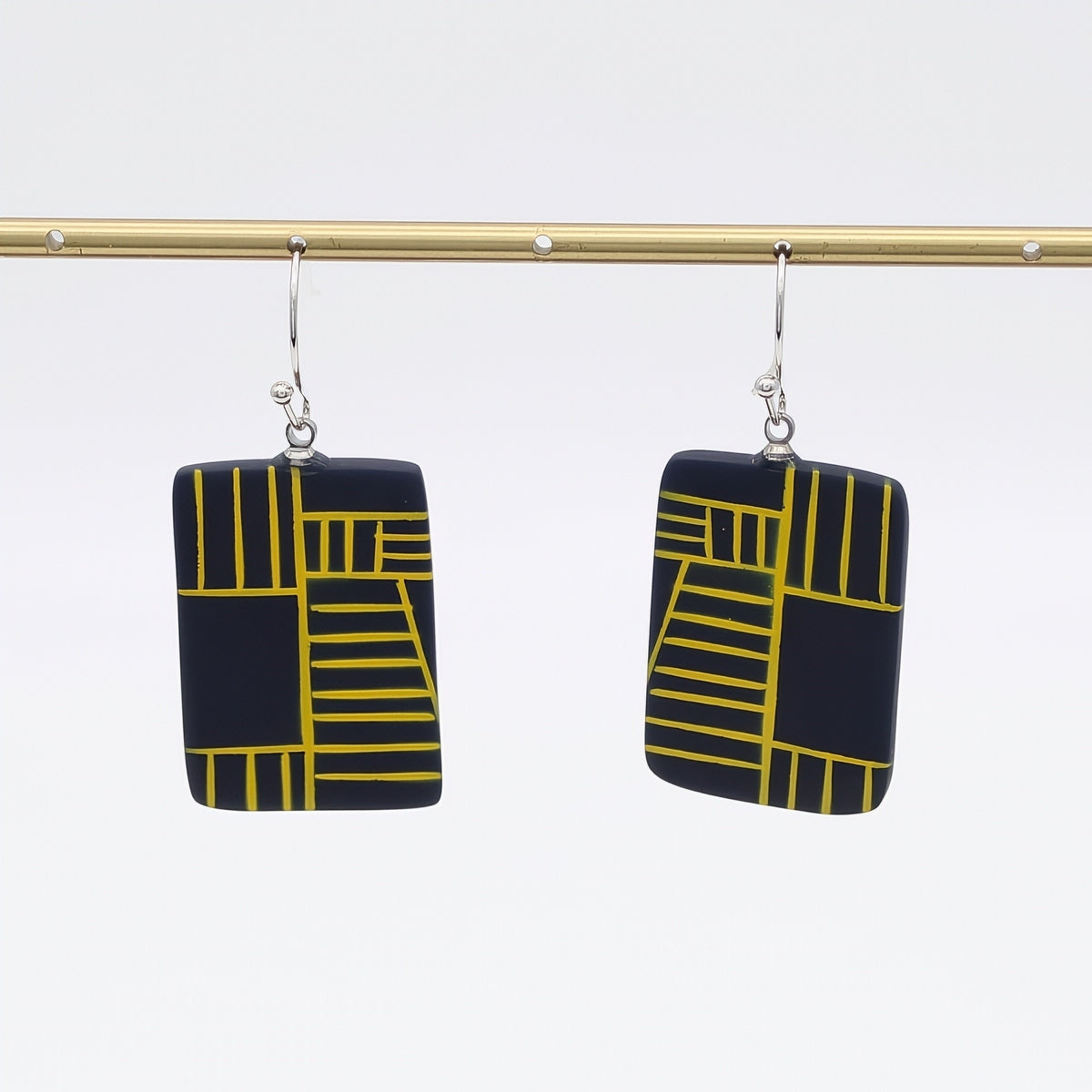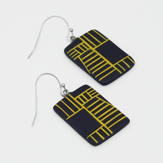 Navy Geovibe Drop Earrings bring a playful splash of color and artisan charm to your jewelry collection. These handpainted earrings feature crisp yellow geometric designs on rich navy blue resin, creating a fun boho vibe that's perfect for everyday wear or special occasions. Comfortable, eye-catching, and effortlessly stylish.