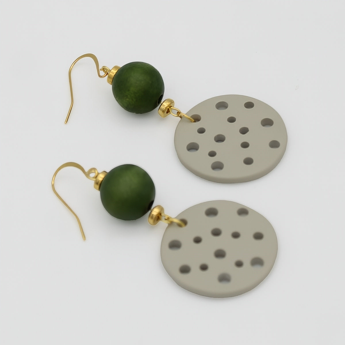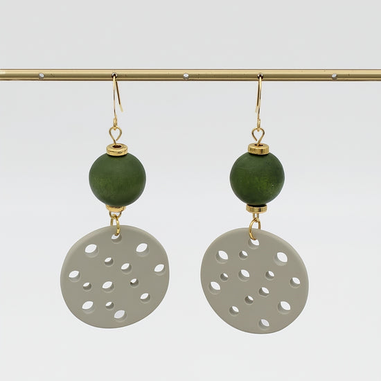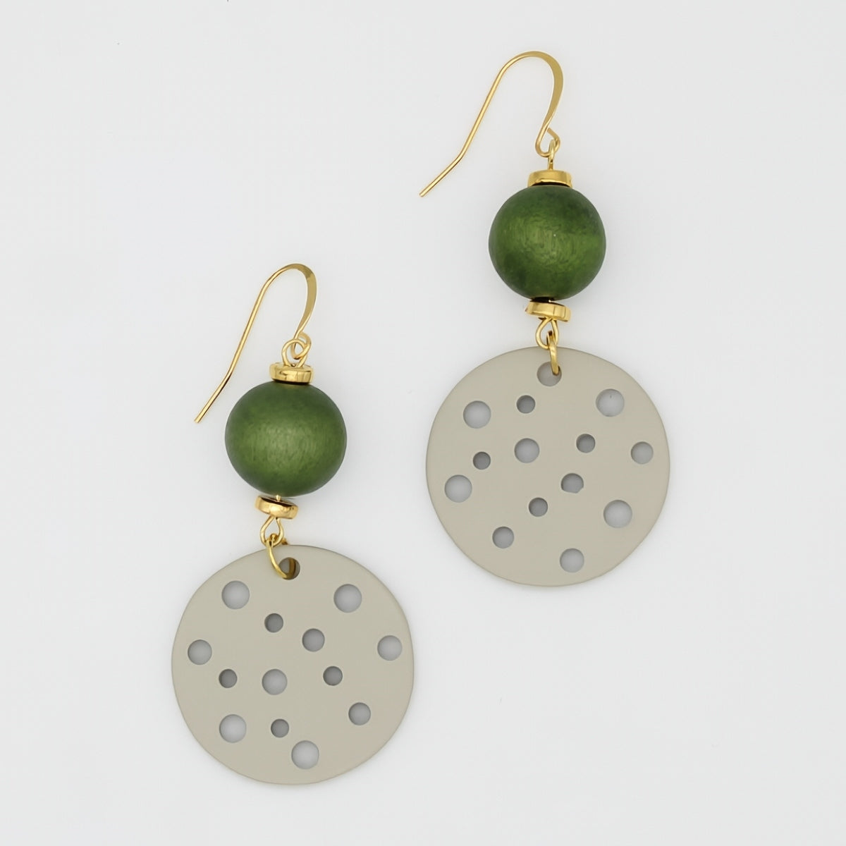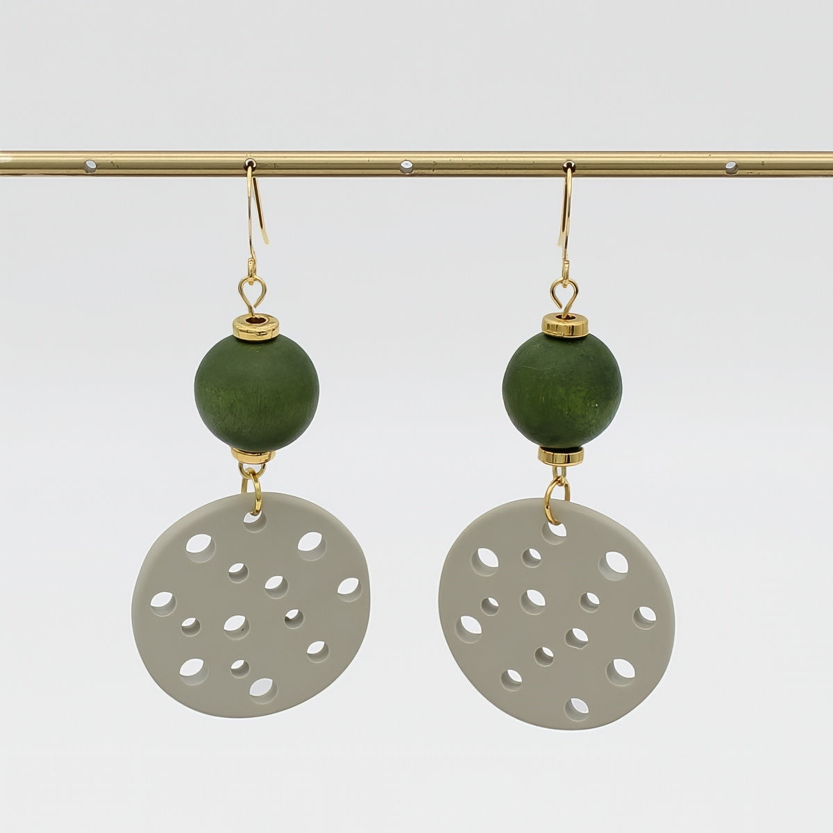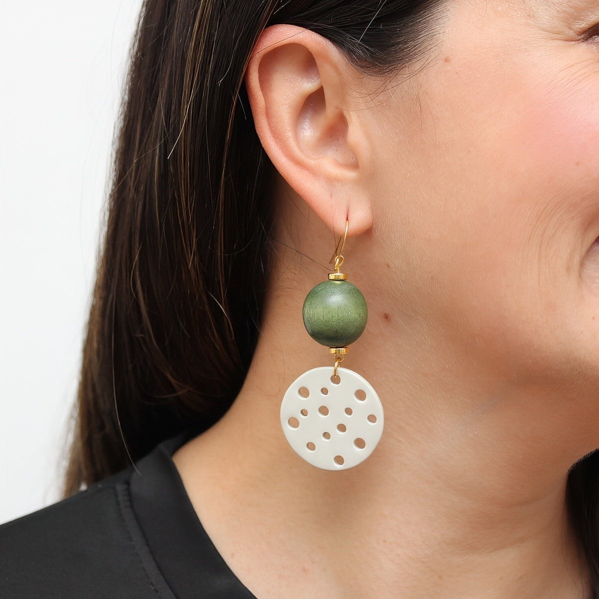 Crafted with the utmost care, these earrings feature both a wood and resin bead that gracefully dangles from a gold plated french hook. Simple enough to wear every day but also sophisticated enough for a formal occasion. Wear alone or with a coordinating necklace.