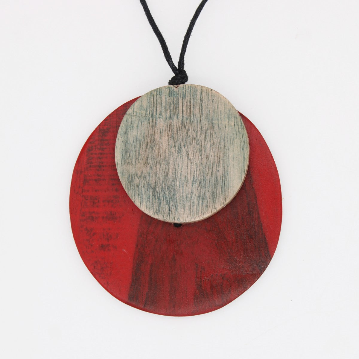 - Handcrafted wooden pendant in vibrant red with white accent - a striking color combination