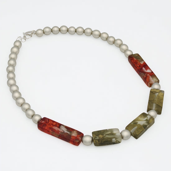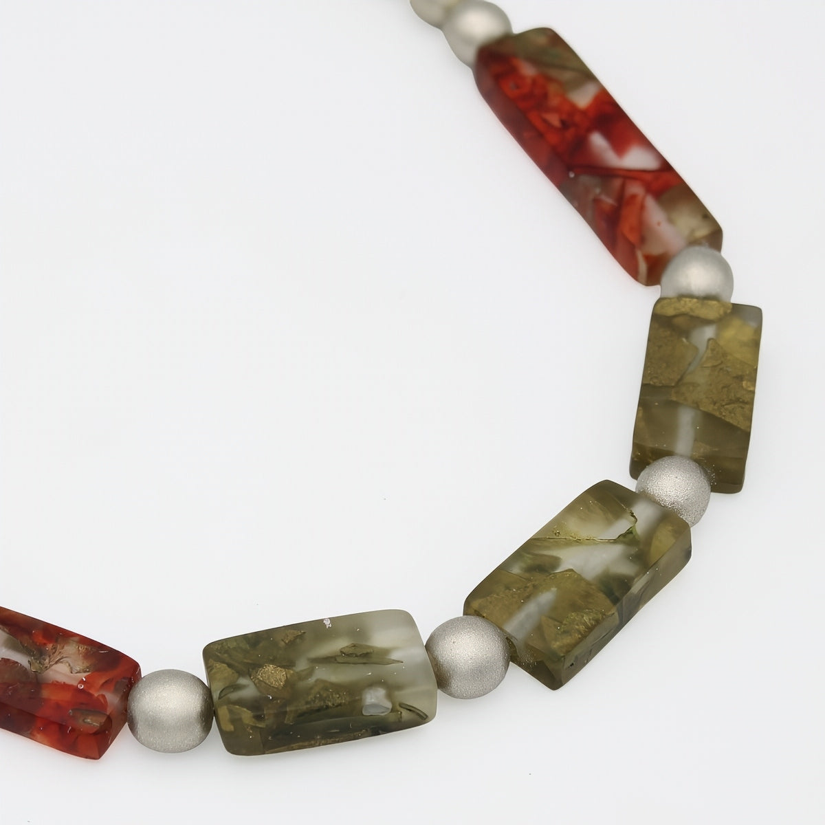 Green Frosted Fusion Necklace — a stunning blend of artful texture and modern design that brings effortless sophistication to any look. This handcrafted statement piece features a striking combination of frosted resin and warm wood elements, creating a beautiful interplay of cool, polished surfaces and organic warmth. Finished with a toggle closure; each bead catches the light in a soft, dimensional way, adding depth and visual interest to this bold yet lightweight design.