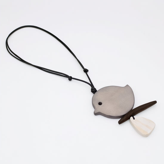 Everyone's favorite robin is back in a charming new design! The Taupe Robin On A Branch Necklace features a beautifully hand-painted wooden pendant showcasing a soft taupe robin perched gracefully on a branch. This elegant piece brings a touch of nature's subtle beauty to your everyday style.