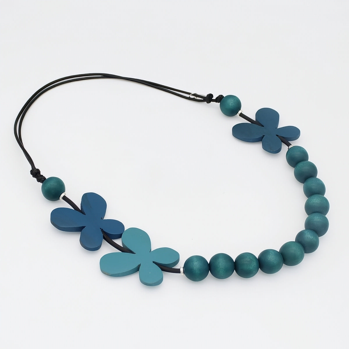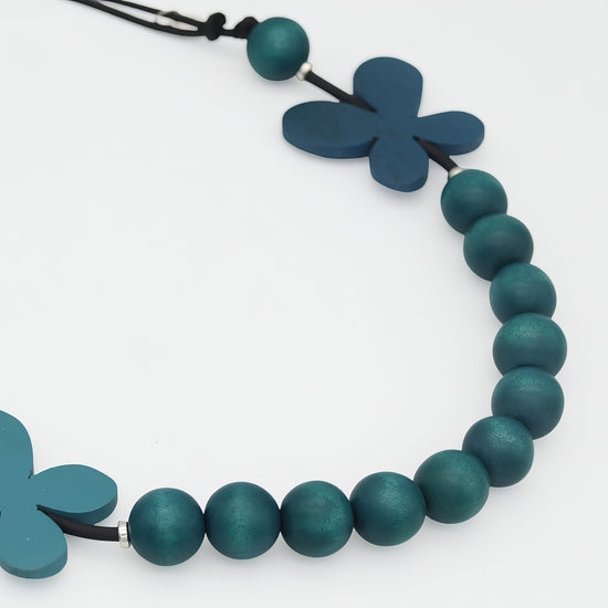 Inspired by warm breezes and sunlit forest paths, this necklace pairs richly toned wood beads with a carved butterfly focal that steals the show. A nature-forward statement piece that brings boho elegance to every outfit.