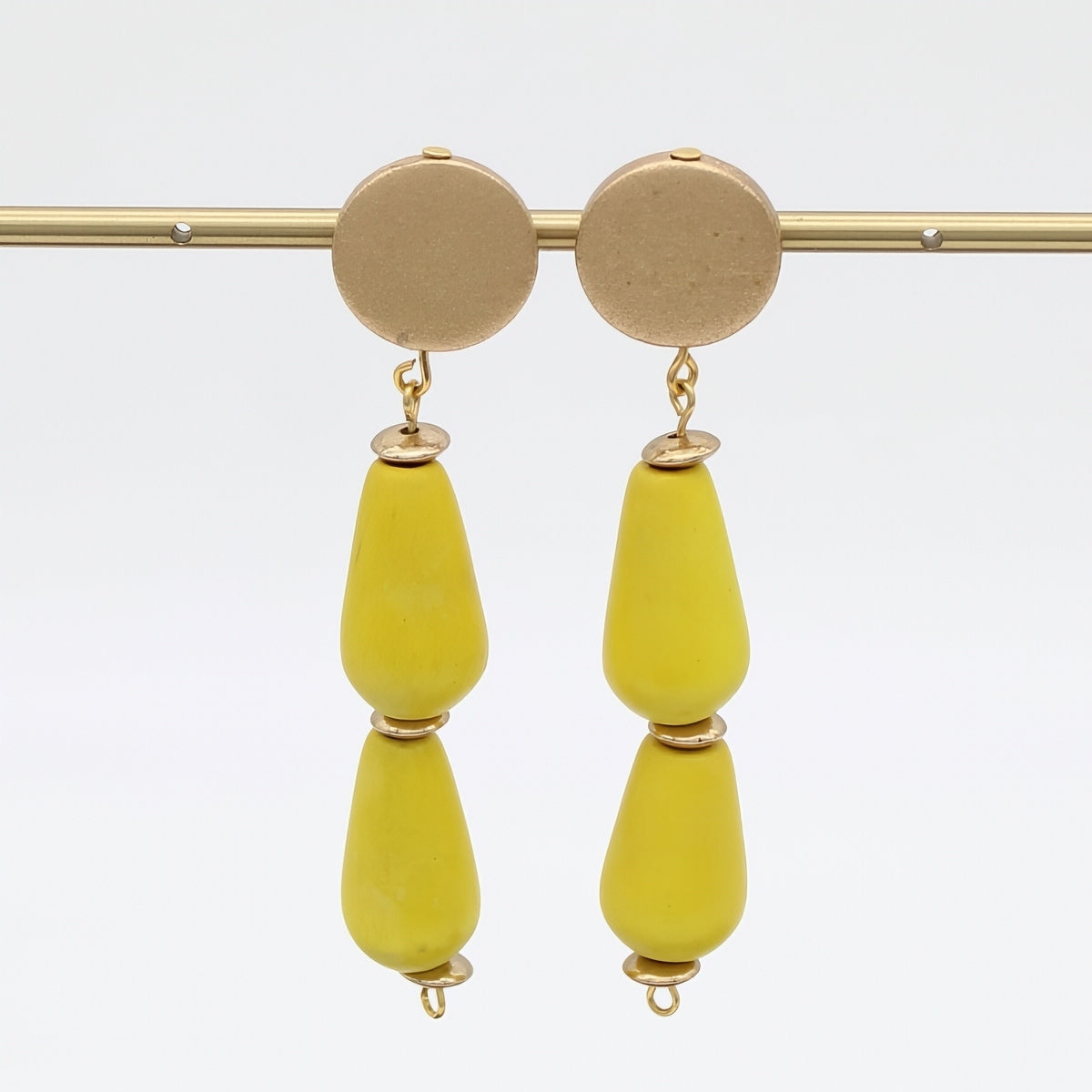 Embrace effortless coastal elegance with these sculptural yellow driftwood teardrop earrings. Handcrafted from natural wood, each piece features a soft, organic shape that brings warmth and movement to any look.